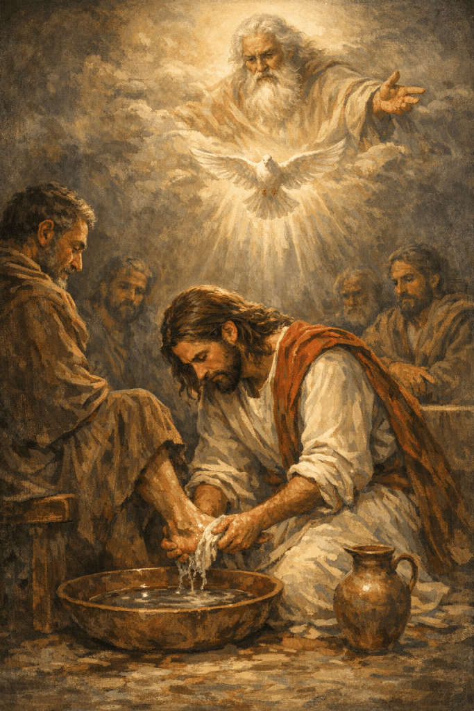 Only after knowing his full authority and divine commission does he take the role of a servant. His humility flows from confidence, not insecurity.