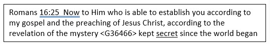 “The preaching of Jesus Christ, according to the revelation of the mystery which was kept secret since the world began, but now is made manifest. ” (Romans 16:25,26)